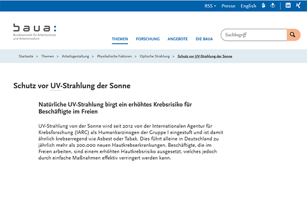 Online-Informationsangebot „Schutz vor UV-Strahlung“