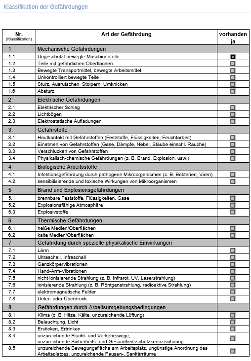 Wirklich alle Gefährdungen erkennen? Das erscheint Paul etwas ambitioniert. Dass die Maschinen der Holzbearbeitung in seiner Werkstatt gefährlich sind, ist klar. Aber manche Gefährdungen sind ihm möglicherweise gar nicht bekannt. Paul macht sich ein bisschen Sorgen, wichtige Aspekte im Arbeits- und Gesundheitsschutz zu vergessen. Frau Neu empfiehlt ihm das Dokument „Klassifikation der Gefährdungen“ (www.bghm.de Webcode 2923). Es hilft Paul, die Gefährdungen richtig zu benennen und außerdem kann es wie eine Checkliste genutzt werden, um weitere Gefährdungen aufzuspüren. Die Liste hilft Paul sehr. Mit Hilfe der Liste findet er auf Anhieb zwei weitere Gefährdungen, die praktisch ständig bei ihm vorhanden sind, nämlich durch Lärm und Holzstaub.