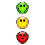 - hohes Risiko (Stufe 3 / Stufe 4) dargestellt durch einen roten Smiley